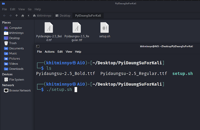 Let's assume that the download has already been made. In Kali, R-Click the downloaded file >> Extract here and extract it. You will see a folder called PyiDaungSuForKali. Open it up. It's easy, so I won't show the picture anymore.